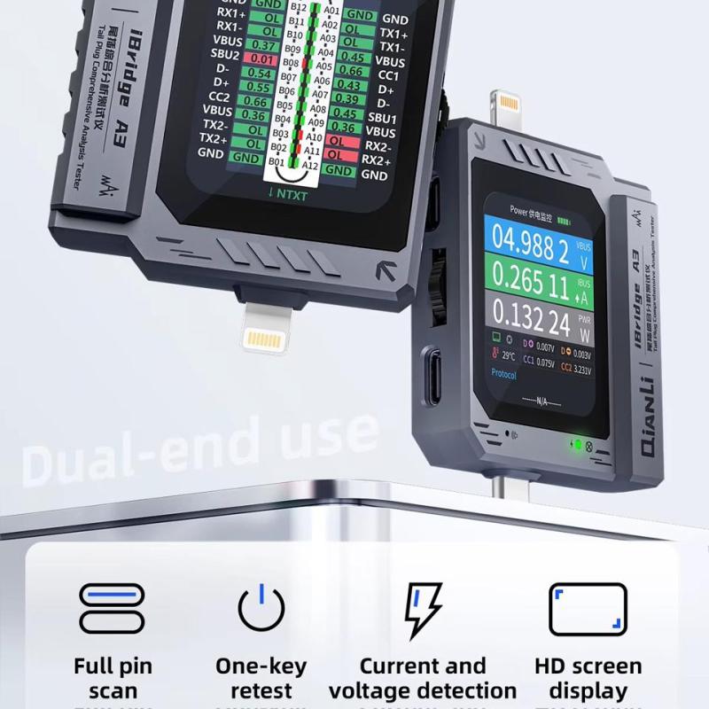 1. iBridge A3 tail plug comprehensive analysis tester, small and portable, current and voltage detection, automatic scan detection, HD screen display