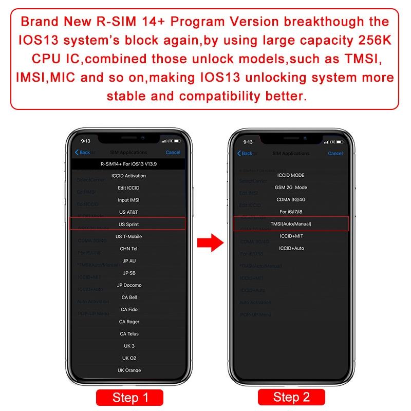 1. R-SIM14+ program version once again broke through the iOS13 system blockade, using 256K large-capacity CPU chip, combining TMSI, IMSI, MIC and other unlock modes, so that unlocking iOS13 system is better and more stable.