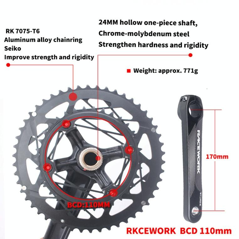 9. Weight of crankset: about 736 grams (excluding the central axle)