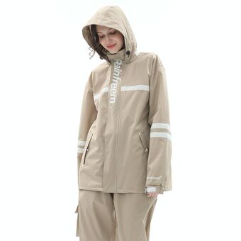 Raninfreem Outdoor Fashion Double Riding Reflection Raincoat Rain Pants Suit M(Light Brown) (Raninfreem)