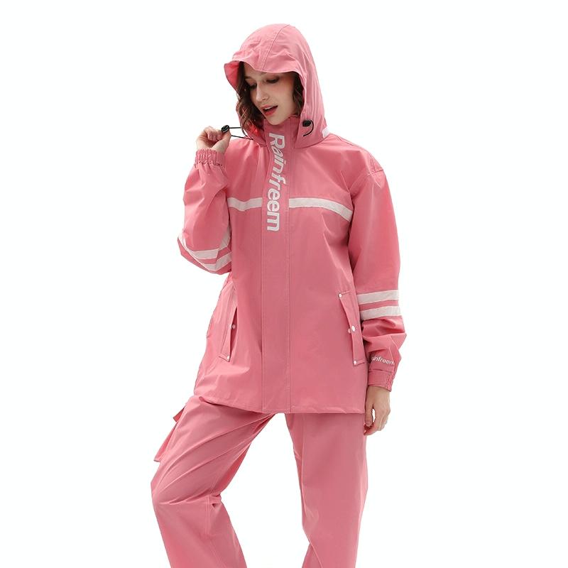 Raninfreem Outdoor Fashion Double Riding Reflection Raincoat Rain Pants Suit XL(Cherry Powder) (Raninfreem)