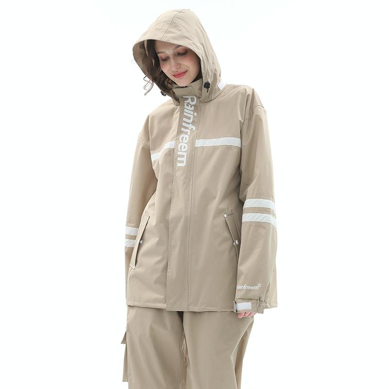 Raninfreem Outdoor Fashion Double Riding Reflection Raincoat Rain Pants Suit XL(Light Brown) (Raninfreem)