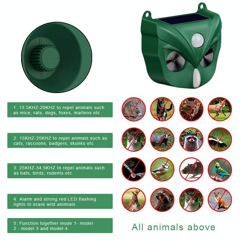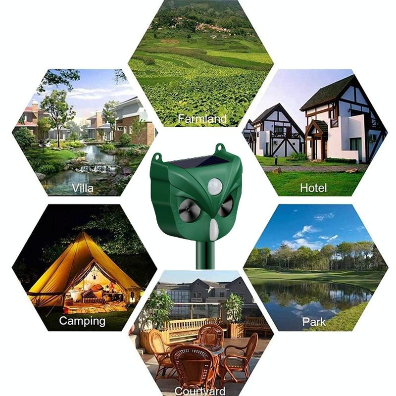 3. 120 decibels alarm, LED flashing red light to drive animals