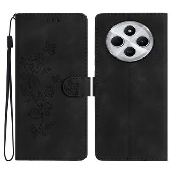 For Redmi 14C 4G Flower Butterfly Embossing Pattern Leather Phone Case(Black)