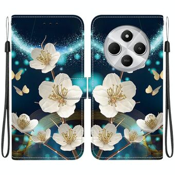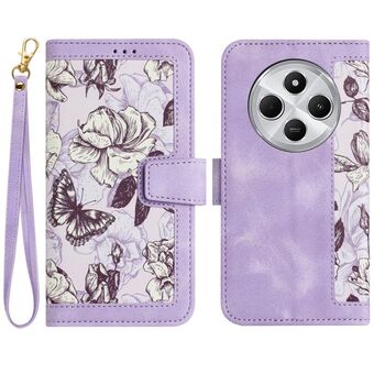 For Redmi 14C 4G Floral Pattern Leather Phone Case with Lanyard(Light Purple)