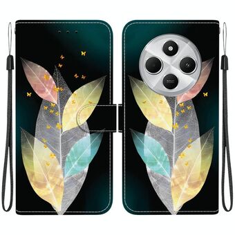 For Redmi 14C 4G Floral Pattern Leather Phone Case with Lanyard(Black)