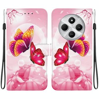 For Redmi 14C 4G Floral Pattern Leather Phone Case with Lanyard(Pink)