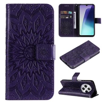 For Redmi 14C 4G Embossed Sunflower Pattern Flip Leather Phone Case(Purple)