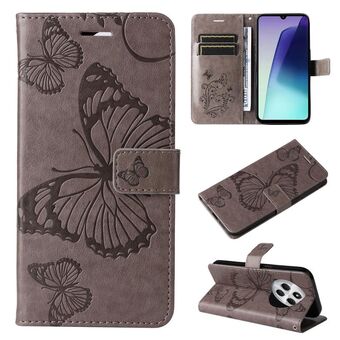 For Redmi 14C 4G Global 3D Butterfly Embossed Pattern Flip Leather Phone Case(Grey)
