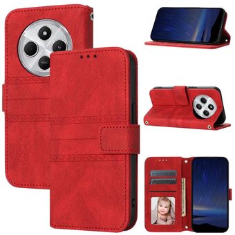 For Redmi 14C 4G Embossed Stripes Skin Feel Leather Phone Case(Red)