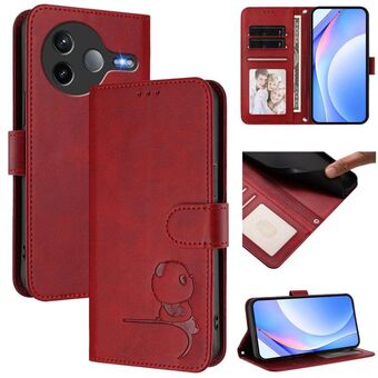 For Xiaomi Poco F7 Pro / Redmi K80 Litter Panda Embossing RFID Leather Phone Case with Lanyard(Wine Red)