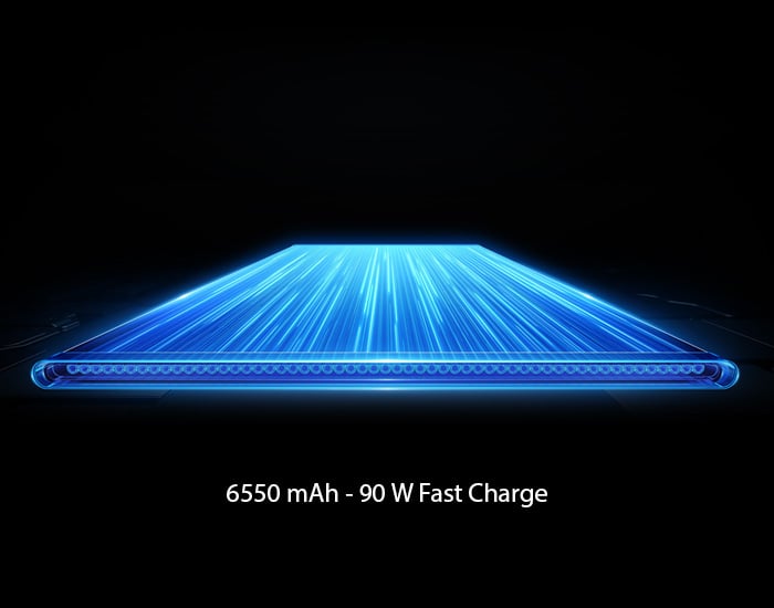 The battery measures an impressive 6550 mAh and can be charged with up to 90W