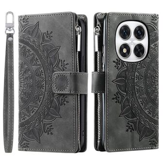 For Redmi Note 14 Pro 4G Multi-Card Totem Zipper Leather Phone Case(Grey)
