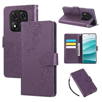 For Redmi Note 14 5G Global Rose Flower Embossed 3-Card Slots Leather Phone Case(Deep Purple)