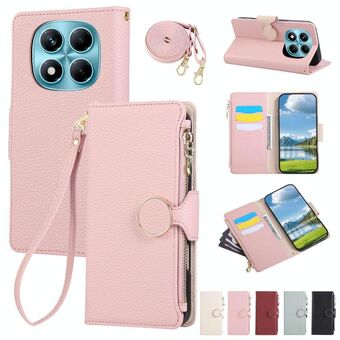 For Redmi Note 14 Pro 4G Round Buckle Zipper Wallet Leather Phone Case with Crossbody Strap(Pink)