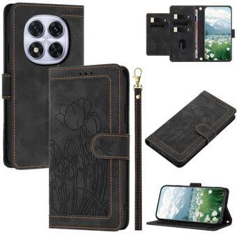 Θήκη τηλεφώνου από δέρμα με ανάγλυφα τουλίπες για Redmi Note 14 Pro 5G με κορδόνι (Μαύρο)