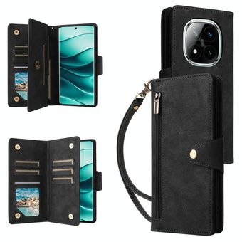 For Redmi Note 14 Pro 5G Rivet Buckle 9 Cards Three Fold Leather Phone Case(Black)