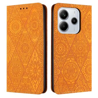 For Redmi Note 14 4G 163.25mm Ethnic Embossed Adsorption Leather Phone Case(Yellow)