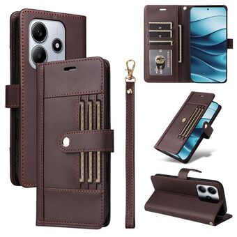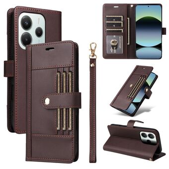 For Redmi Note 14 4G 164.84mm Six Card Slots Buckle Leather Phone Case with Lanyard(Coffee)