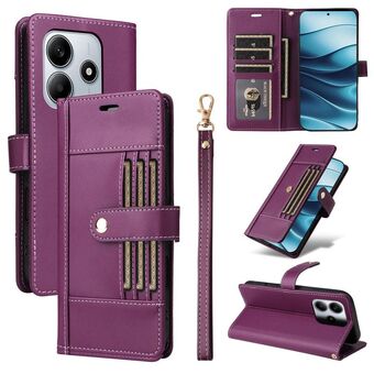 For Redmi Note 14 4G 164.84mm Six Card Slots Buckle Leather Phone Case with Lanyard(Purple)