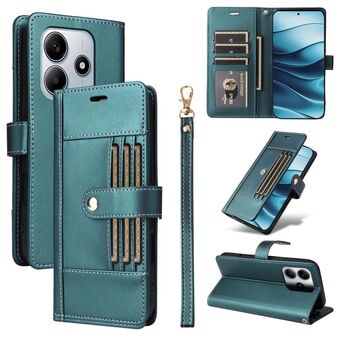 For Redmi Note 14 4G 164.84mm Six Card Slots Buckle Leather Phone Case with Lanyard(Green)