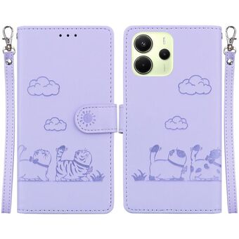 For Redmi Note 14 5G Cute Cats RFID Leather Phone Case(Purple)