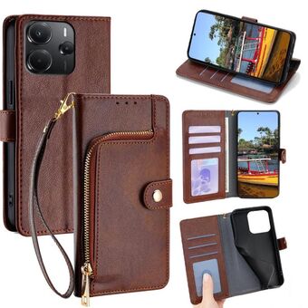 For Redmi Note 14 4G 164.84mm Zipper Bag Leather Phone Case(Brown)