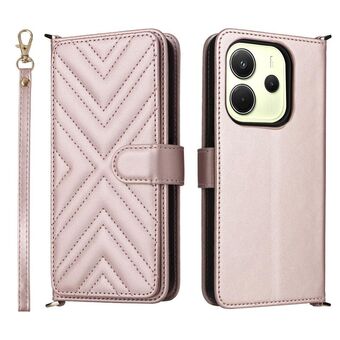 For Redmi Note 14 4G 164.84mm Zipper Bag Leather Phone Case(Rose Gold)