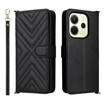 For Redmi Note 14 4G 163.25mm Rhombic Texture Flip Leather Phone Case with Lanyard(Black)