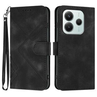 For Redmi Note 14 5G Global Rhombic Texture Flip Leather Phone Case with Lanyard(Black)