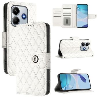 For Redmi Note 14 4G 163.25mm Rhombic Texture Flip Leather Phone Case with Lanyard(White)