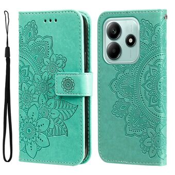 For Redmi Note 14 5G Datura Flower Embossed Flip Leather Phone Case(Dark Green)