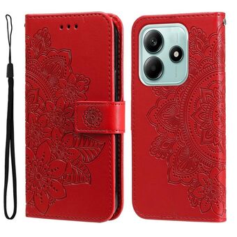 For Redmi Note 14 4G 164.84mm Sun Mandala Embossing Pattern Phone Leather Case(Red)
