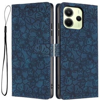For Redmi Note 14 4G Global 163.25mm Cherry Blossoms Embossed Leather Phone Case(Dark Blue)