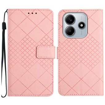 For Redmi Note 14 4G 164.84mm EU Version Rhombic Grid Texture Leather Phone Case(Pink)