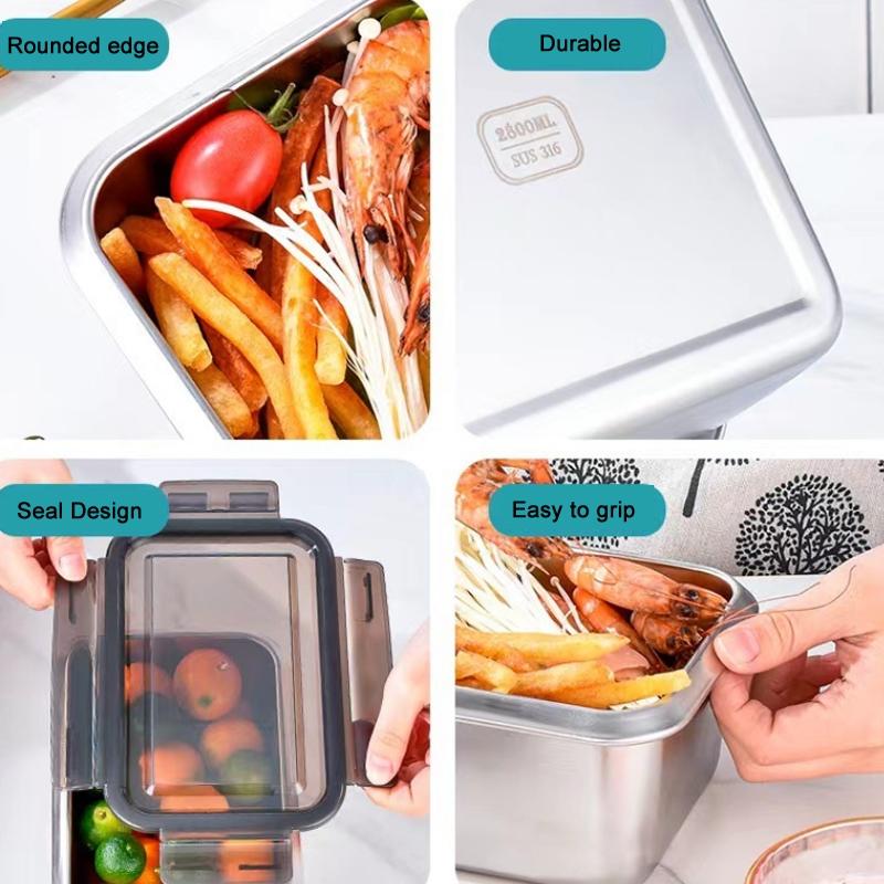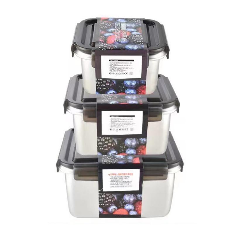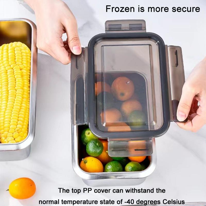 Refrigerator Refrigerated Storage Stainless Steel Airtight Crisper, Capacity: Square 3 PCS/Set