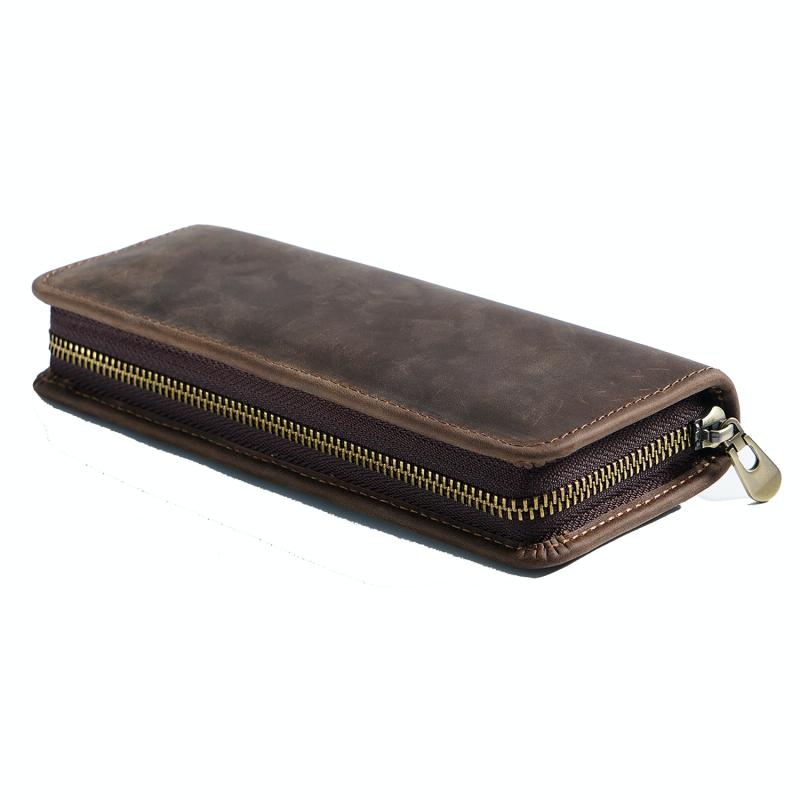 Retro Crazy Horse Leather Square Pencil Case Genuine Leather Zipper Pen box(Coffee)