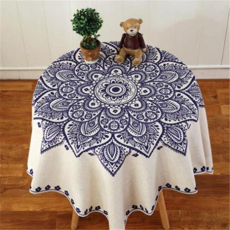 Retro Pattern Linen Table Cloth For Dinner Home Decor Dustproof Table Cover, Size:140x140cm(Celadon Porcelain)