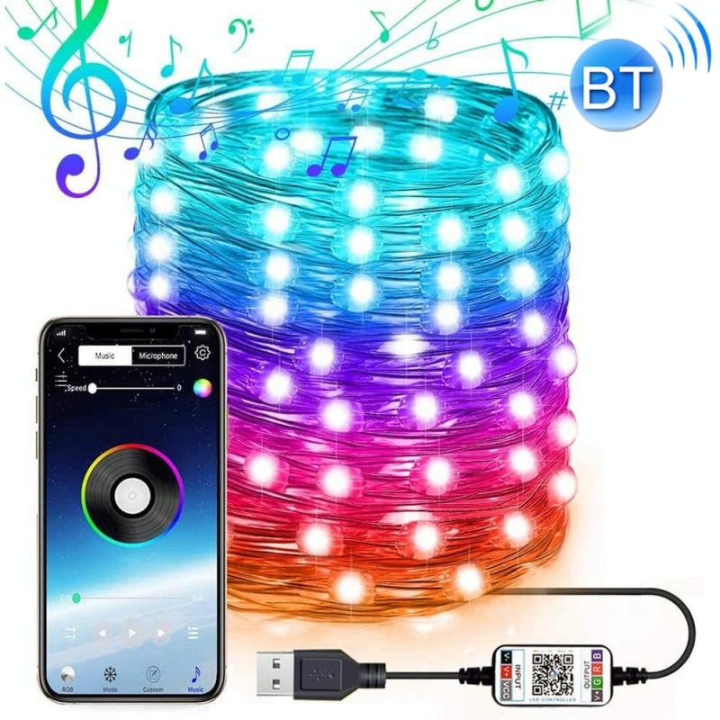 RGB USB LED Copper Wire Light String Holiday Decoration Light String Bluetooth Mobile APP Control, Length:12m 120 LED