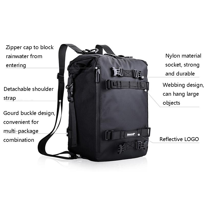 Rhinowalk Multi-Function Motorcycle Rear Seat Bag Combination Rear Shelf Pannier, Colour: Black 10L (Rhinowalk)