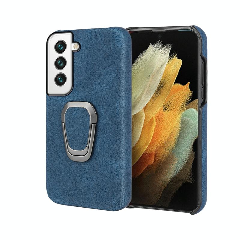 Ring Holder PU Phone Case For Samsung Galaxy S22 5G(Blue)