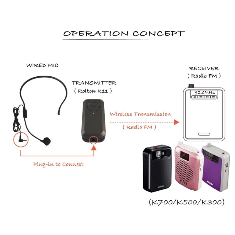 1. Connect the plug of the wired microphone to the transmitter together