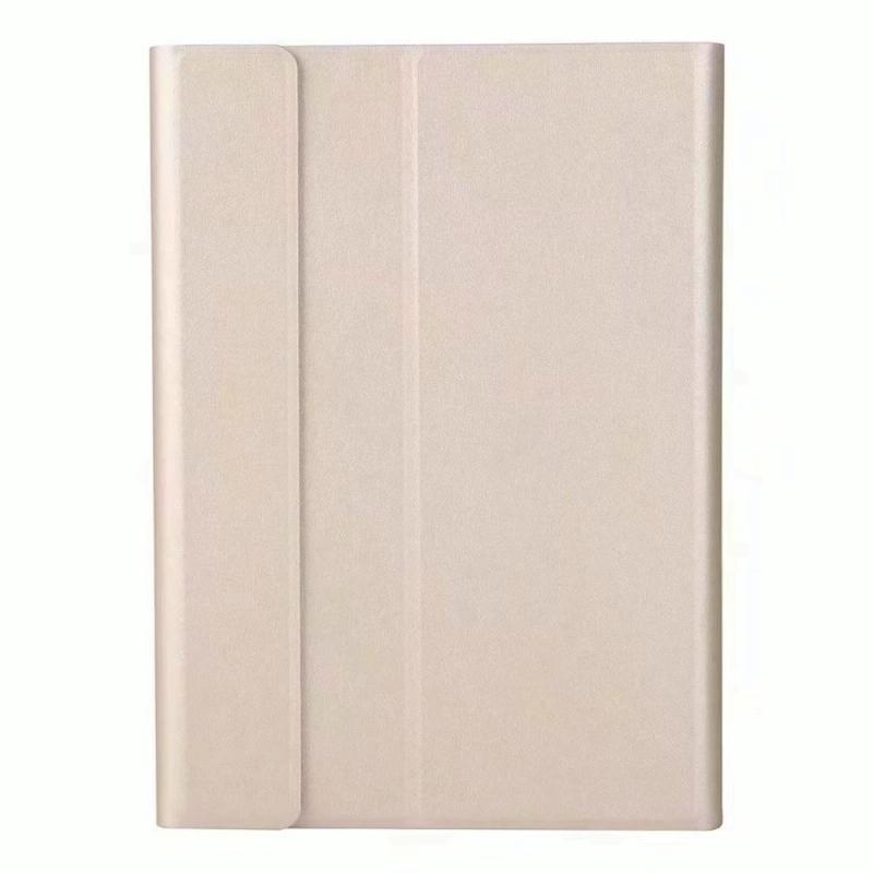 Round Cap Bluetooth Keyboard Leather Case with Pen Slot, without Touchpad For Samsung Galaxy Tab S7(Gold+White Keyboard)
