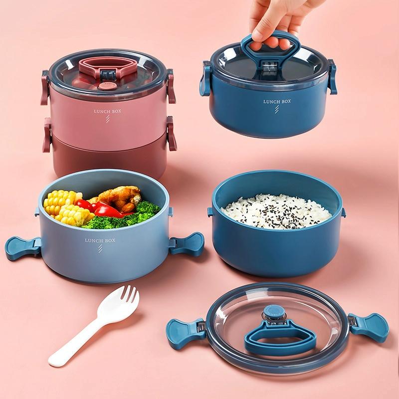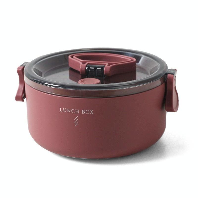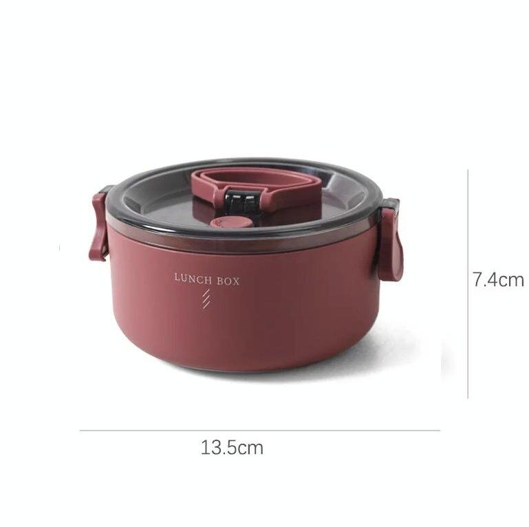 Round Portable Insulation Partitioned Lunch Box Student Office Workers Heated Microwave Oven Bento Box, Style:Single Layer(Red)