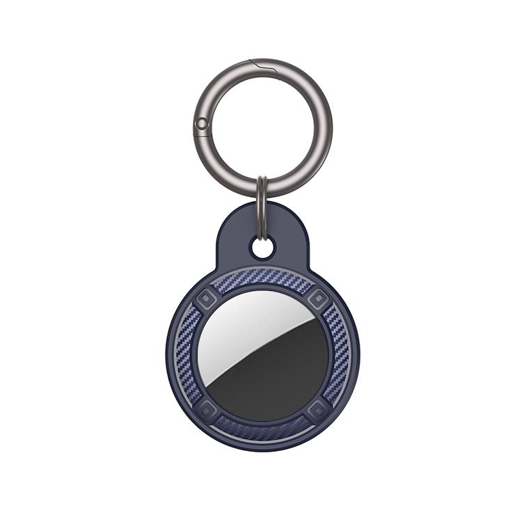 Round Shape Carbon Fiber Anti-fall Case with Keychain Ring for AirTag(Blue)