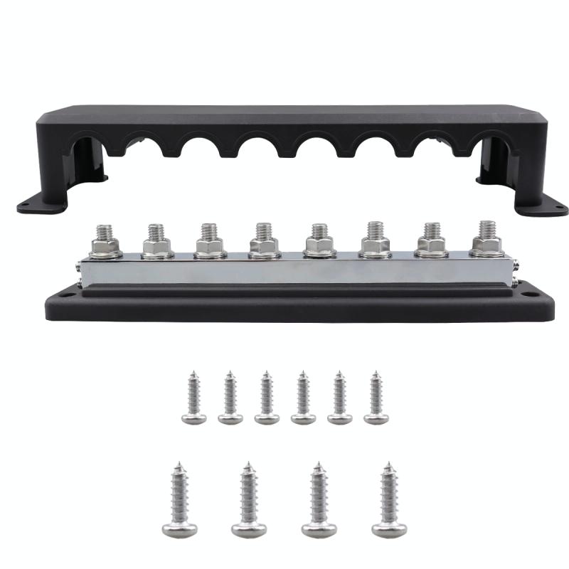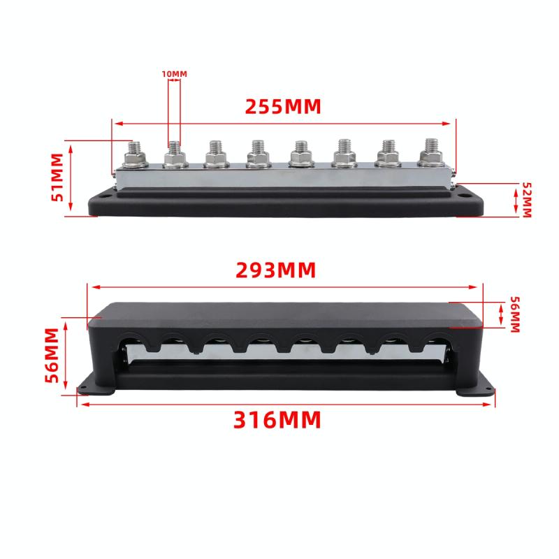 RV 600A High Current busbar 8-way Straight M10 Wiring Studs(Black)
