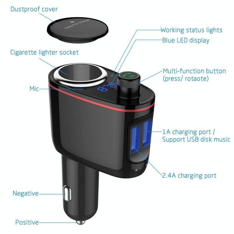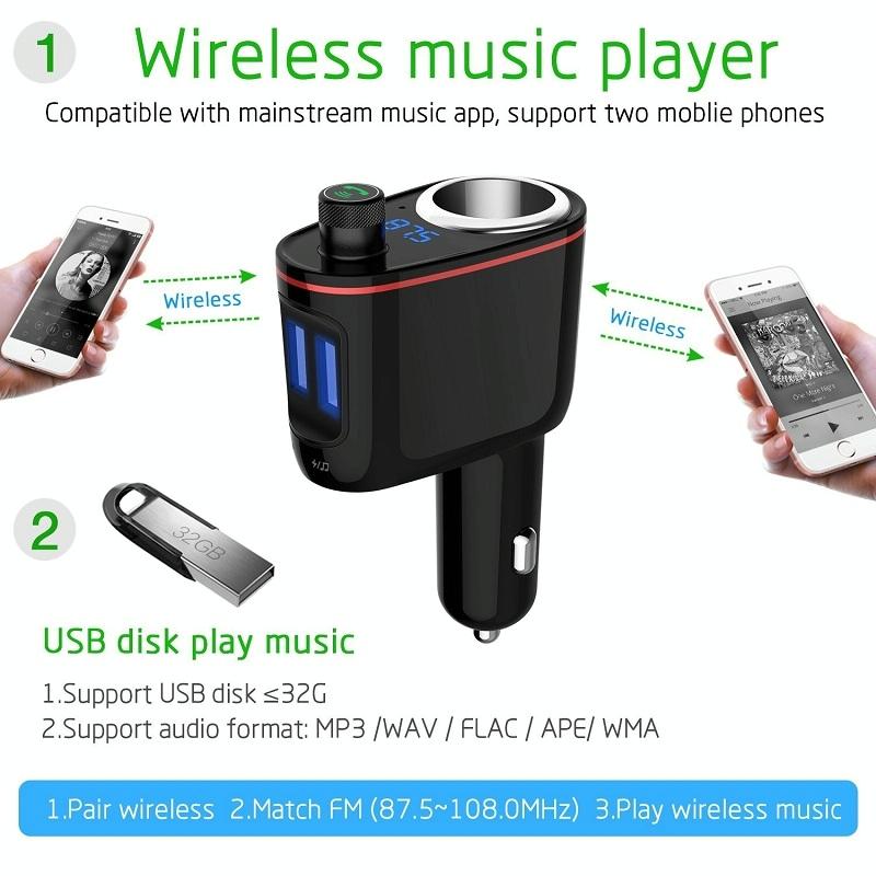 11. Bluetooth version to play music from Bluetooth enabled devices via FM signal; transfer music from USB flash drive