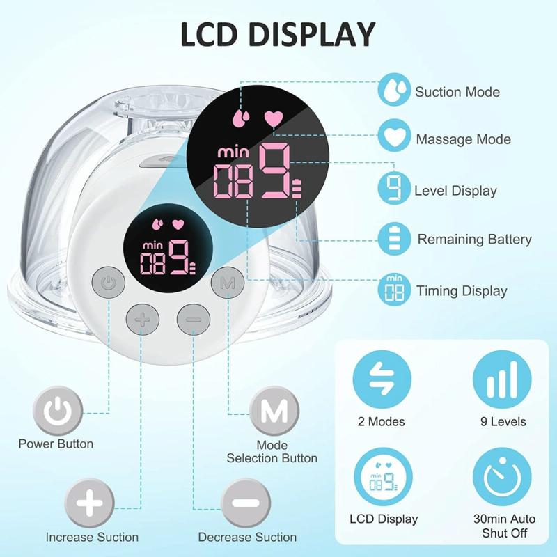 3. Intelligent and adjustable suction, the electric breast pump has 2 modes of breast pumping/massage and 9 levels of suction.
