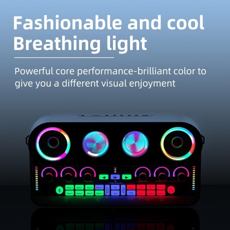2.Not only does it come with cool breathing lights for a different visual experience, this multifunctional sound card is also a wireless Bluetooth-compatible speaker, providing you with heavy bass sound in surround sound.