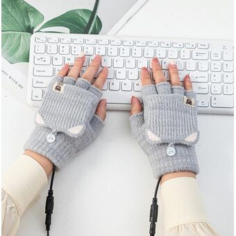 Winter Office USB Heating Warm Half Finger with Cover Gloves Heated Pad, Size: Free Size(Gray)